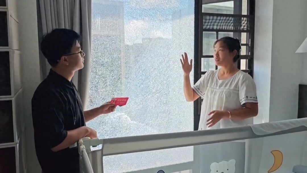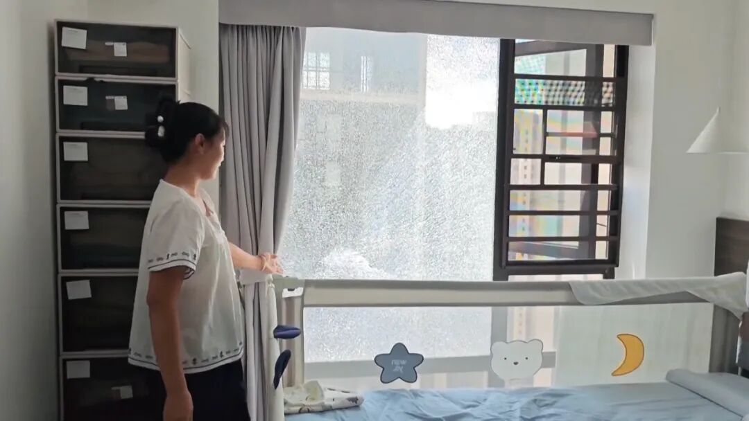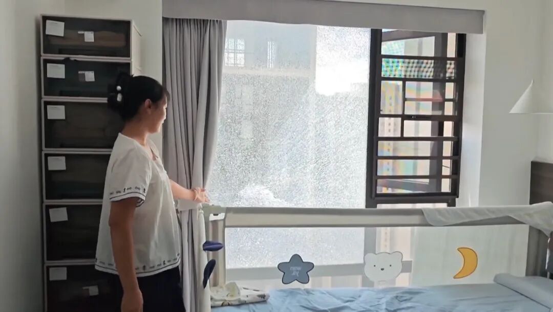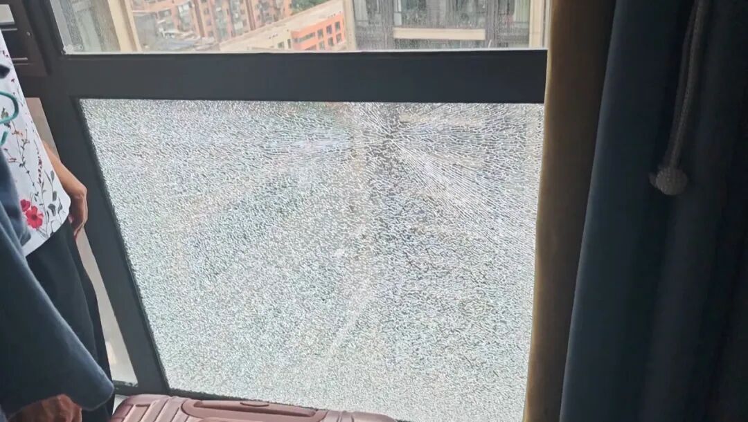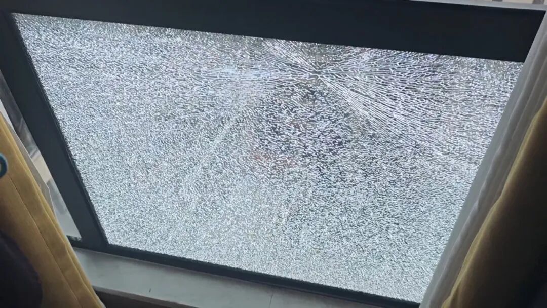 张女士:当天我们中午在这屋头看电视,就听到嘣的一声,过来看到这个玻璃炸掉了,肯定心慌慌啊,当时心里吓得不得了。