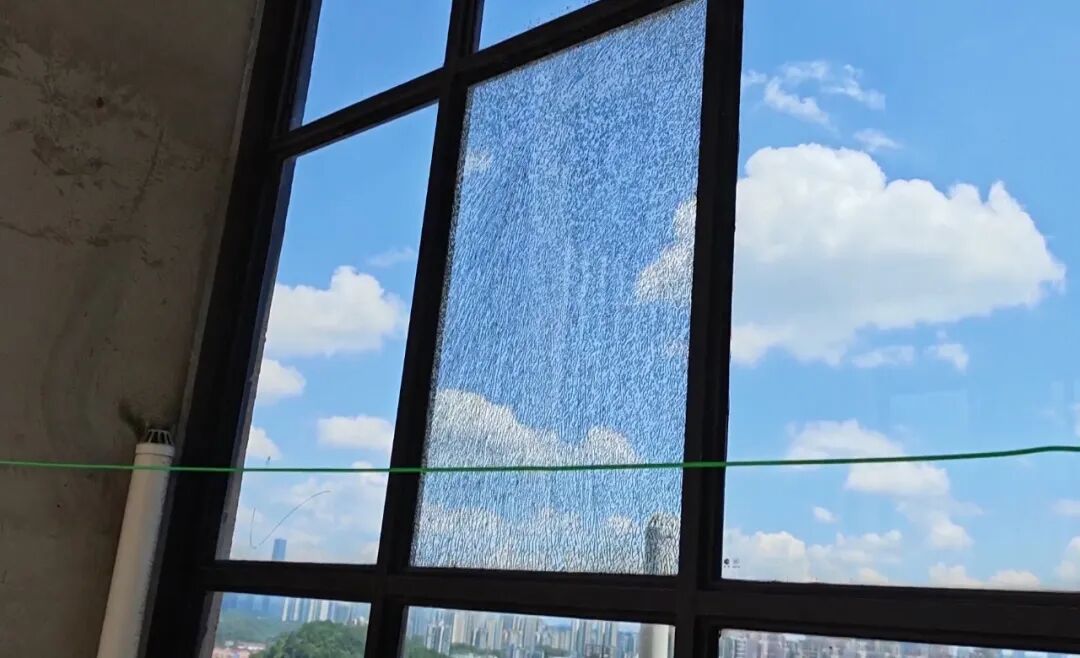 杨女士说,当天她和孩子在床上睡觉,玻璃突然一声爆裂的响声,把她和孩子吓得不轻。根据玻璃的裂纹,他们判断应该是窗户玻璃自爆,而这个情况在小区里已经不是新鲜事了。