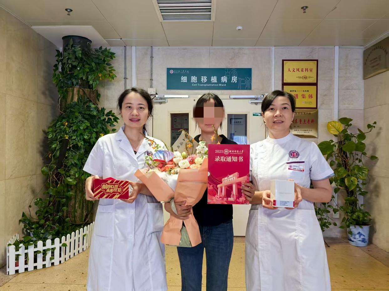 “姐姐,我考上湖南师范大学啦!这么多年,没有你们的帮助,我肯定撑不到现在。”9月12日,21岁的甜甜(化名)带着录取通知书,特地回到湖南省人民医院血液科及细胞移植病房,把这个好消息告诉曾经日夜守护她的医护人员。