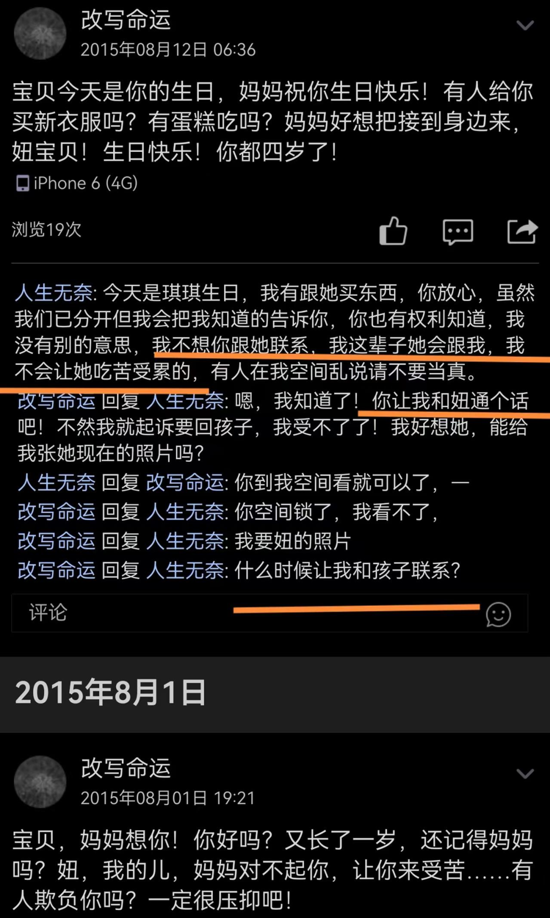 2014年,刘某主动联系,未答应将孩子户口送来,提出将孩子接过去。考虑到自身经济来源不稳定,白女士犹豫再三后将琪琪给了彼时有开店的刘某。2015年,两人正式离婚,不到半年,白女士看到刘某发布和许某花还有其他孩子的合照。