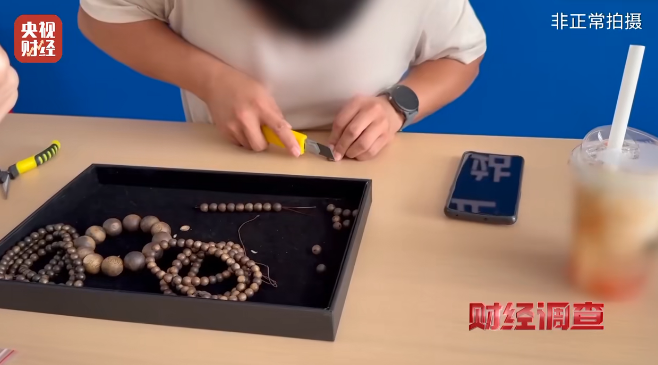 记者进一步调查发现,不少商户还频繁提到却讳莫如深的一个词——“科技货”。几位负责人透露,有一种更高明的造假手段令消费者难以察觉,这就是商户口中的“科技货”。商家声称这类“压精油沉水”的手串“只加精油、不做化工”,可即便如此,这类经人工干预的“科技货”,销量却远超预期。
