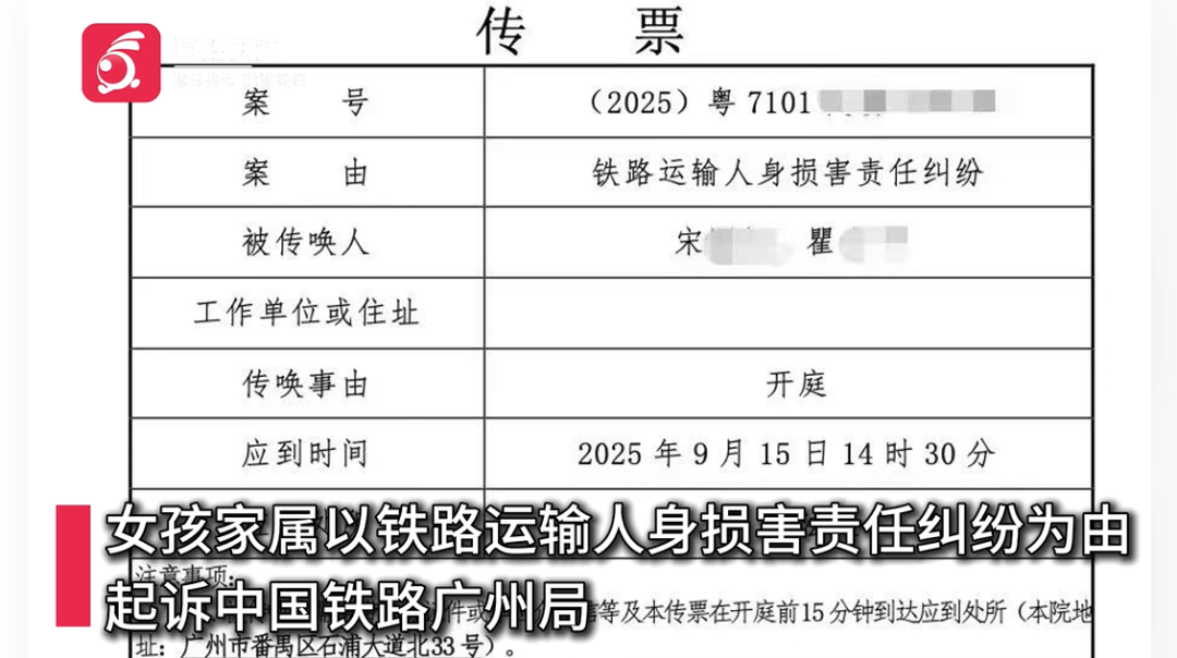 9月15日,湖南张家界15岁女孩被火车撞击致死案民事一审将在广州铁路运输法院开庭,女孩家属以铁路运输人身损害责任纠纷为案由起诉中国铁路广州局。