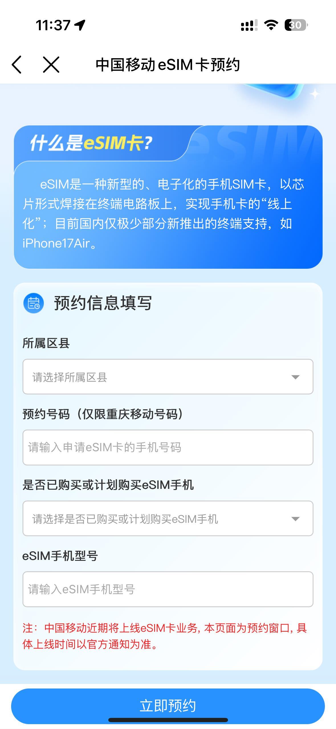 中国移动重庆客服工作人员告诉记者,目前中国移动确实上线了eSIM卡的相关业务,但还没有完全开放,后期完全上线后会在中国移动进行公告。
