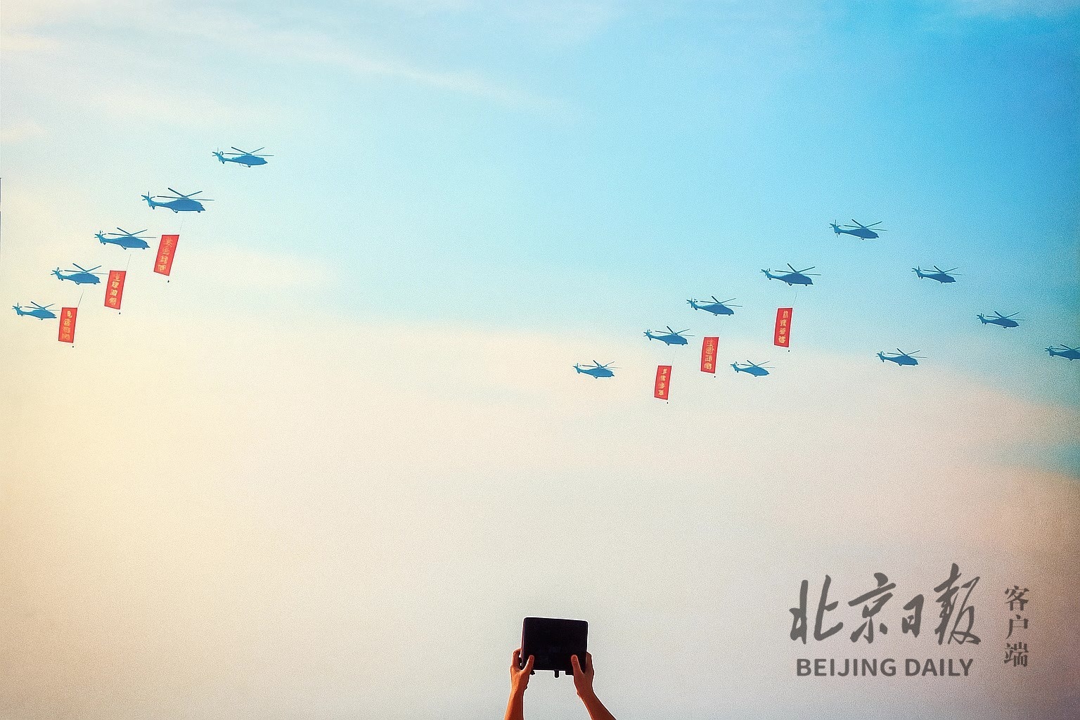 9月3日那天,纪念中国人民抗日战争暨世界反法西斯战争胜利80周年大会隆重举行,侯冈早早来到小区的楼顶等候。当受阅的战机悬挂着“正义必胜”“和平必胜”“人民必胜”的条幅飞过楼顶时,他高高地举起那只箱子,让那段不能遗忘的历史,与此刻的胜利场景紧紧交织。朋友赶紧按下快门,定格下这个珍贵的瞬间。