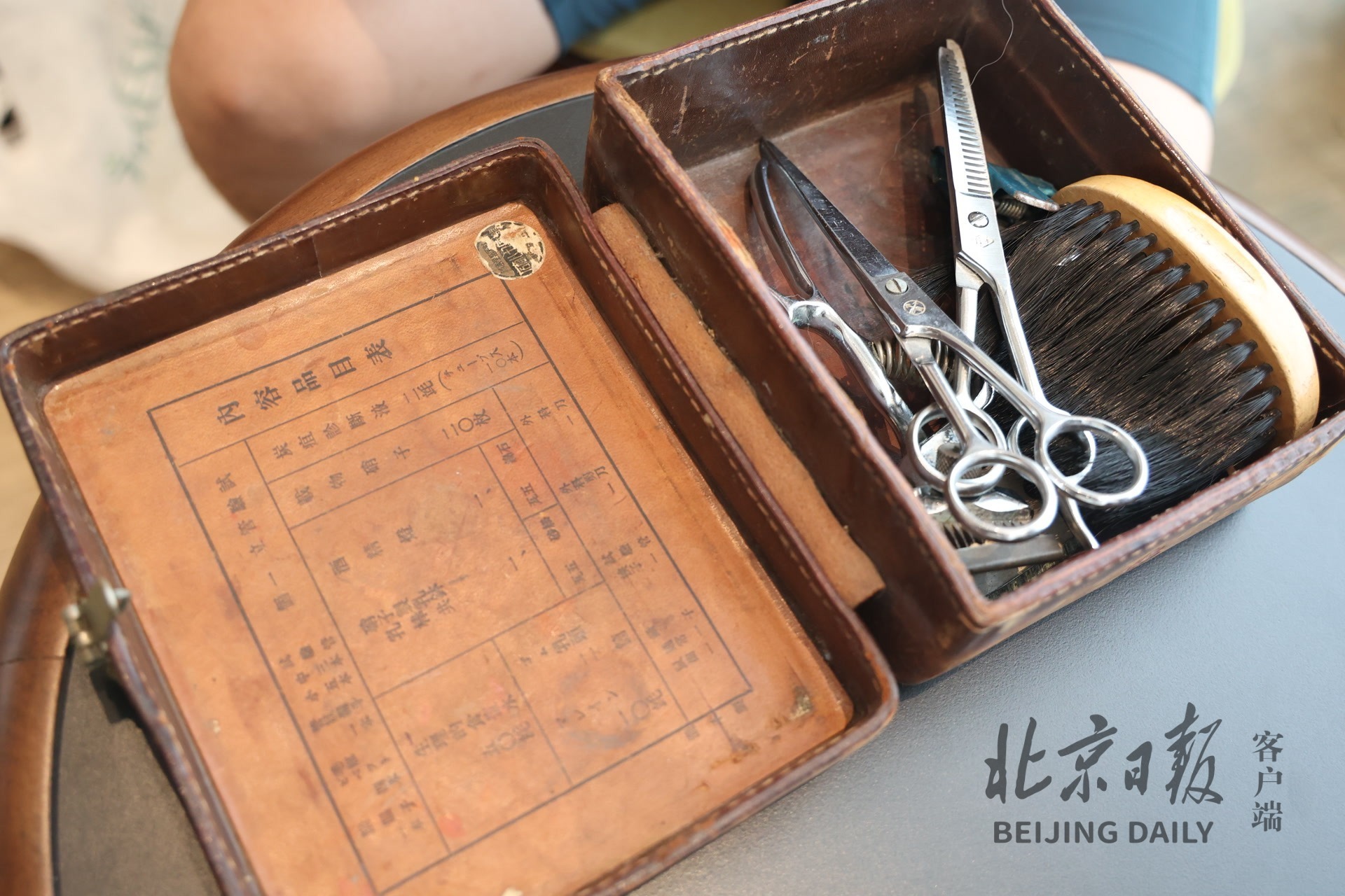 侯冈向记者展示了这只箱子,箱子还保留着爷爷生前使用时的样子——里面装着两把剪刀、两把推子、一个毛刷、一块围布。