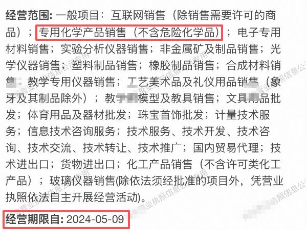 更令人担忧的是,记者以消费者身份咨询了数家店铺时,无一能提供《危险化学品经营许可证》等相关资质。进一步查看发现,部分网店公开的经营者营业执照信息显示,其经营范围内明确:“专用化学产品销售(不含危险化学品)”却仍在违规售卖氢氟酸,且这些营业执照的经营期限也已过期。当记者以“个人想洗玻璃”为由咨询其中客服,对方直接回复“可以的,下午发货”,并未核查记者身份与实际用途。