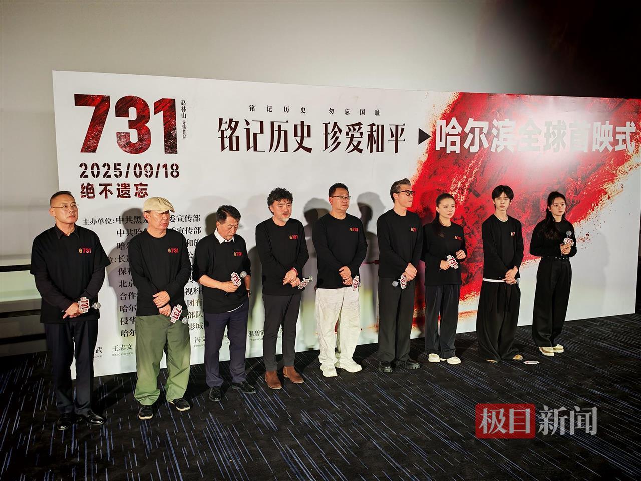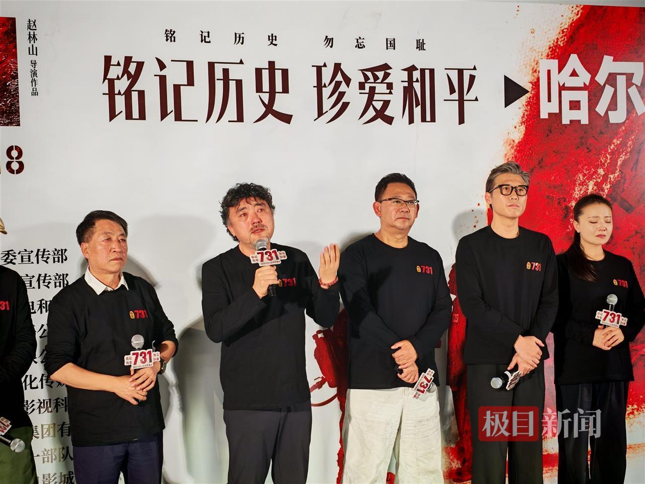 赵林山一边抹泪一边说,他今天无比地激动,不知道为什么止不住地流泪。当731三个字在大荧幕上亮起的时候,他想对他们说,首映式必须在哈尔滨,这对那些逝去的人是一种告慰,“无论如何,林山对得起他们”。