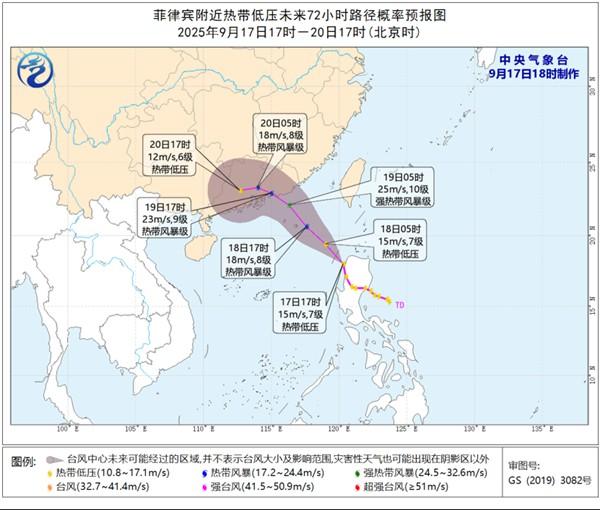 预计,该热带低压将以每小时15-20公里的速度向西北方向移动,强度逐渐增强,将于今天(17日)夜间至明天(18日)白天在南海东北部加强为今年第17号台风,并向广东中东部一带沿海靠近。