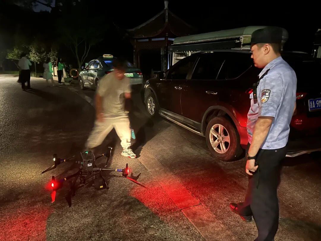 夜间出动无人机,利用热成像功能排查整个山体,但由于气温太热,效果并不理想,并未发现男子踪影。
