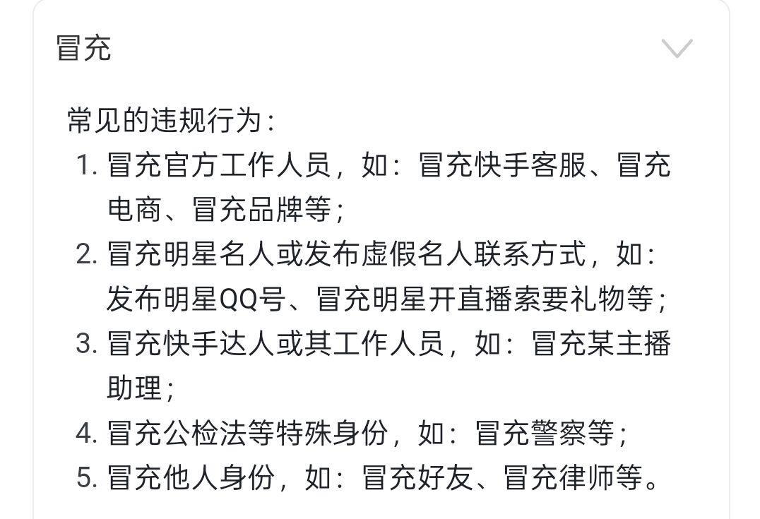 极目新闻记者查询快手社区内容规则中心发现,在直播中出现不当着装时会触发违规,此外平台禁止用户冒充公检法等特殊身份,例如冒充警察等。