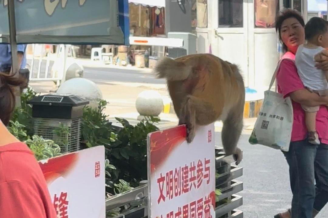 该工作人员介绍,猴子进医院后,全程没有攻击行人,它可能只是找吃的,保安还给了它1个梨子,后来猴子走到医院外滨河路的一家店铺内。该店铺监控画面显示,9月17日下午2点45分猴子进入一家门市内,猴子坐在地上,老板坐在椅子上看手机,不久猴子自行离开了店铺。