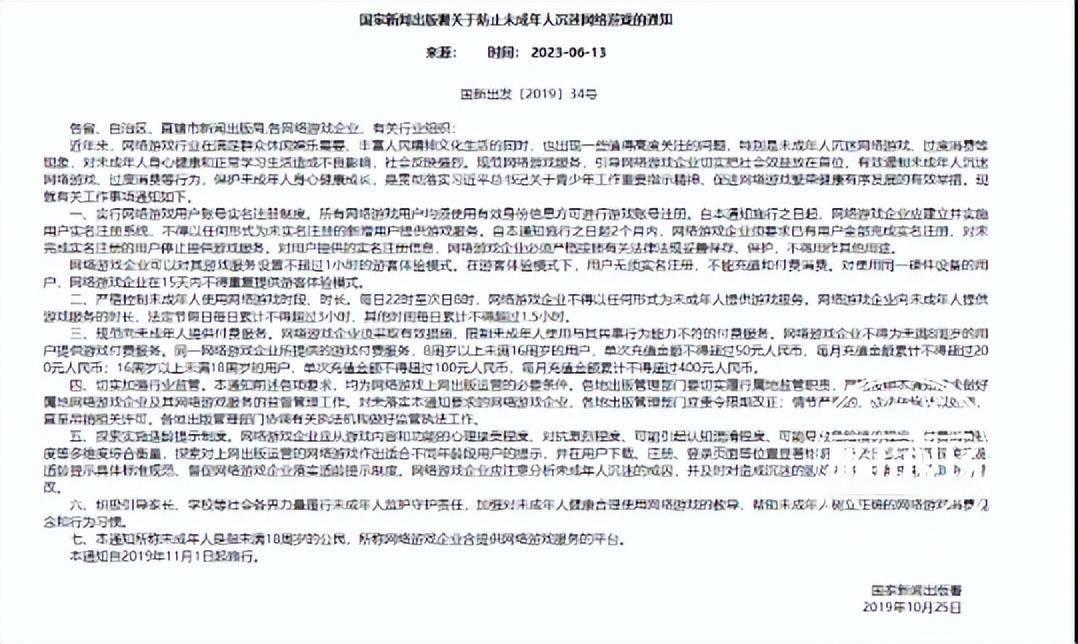 早在2019年,国家新闻出版署发布了《关于防止未成年人沉迷网络游戏的通知》,里面明确规定了游戏公司供应给未成年人玩游戏的时长,以及充值数额,文件规定“网络游戏企业不得为未满8周岁的用户提供游戏付费服务。同一网络游戏企业所提供的游戏付费服务,8周岁以上未满16周岁的用户,单次充值金额不得超过50元人民币,每月充值金额累计不得超过200元人民币。”