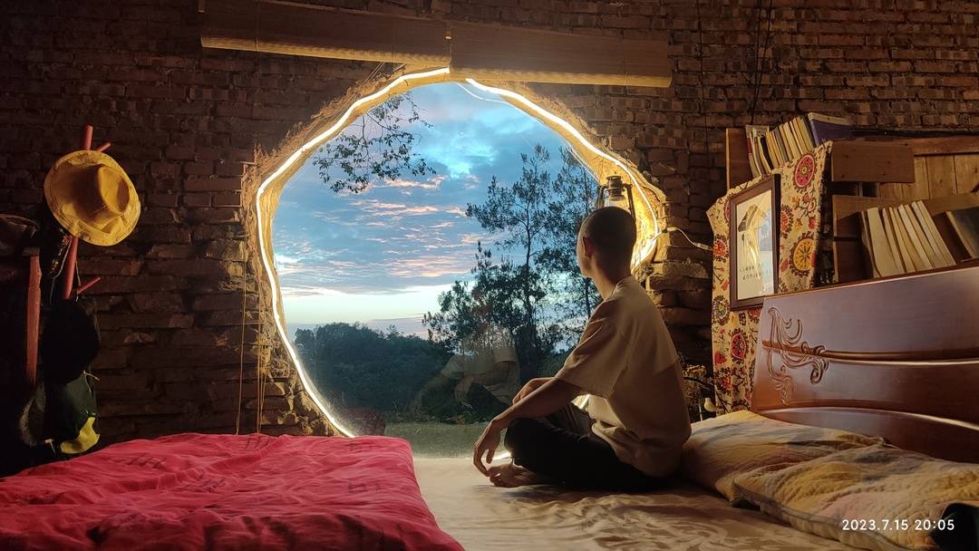 “代表着这里是我的小宇宙,我希望活在自己感觉舒适的空间里。”闵亨才说,打扫了下崖壁,地下铺了点石板,墙壁是自己花了20多天砌出来的。