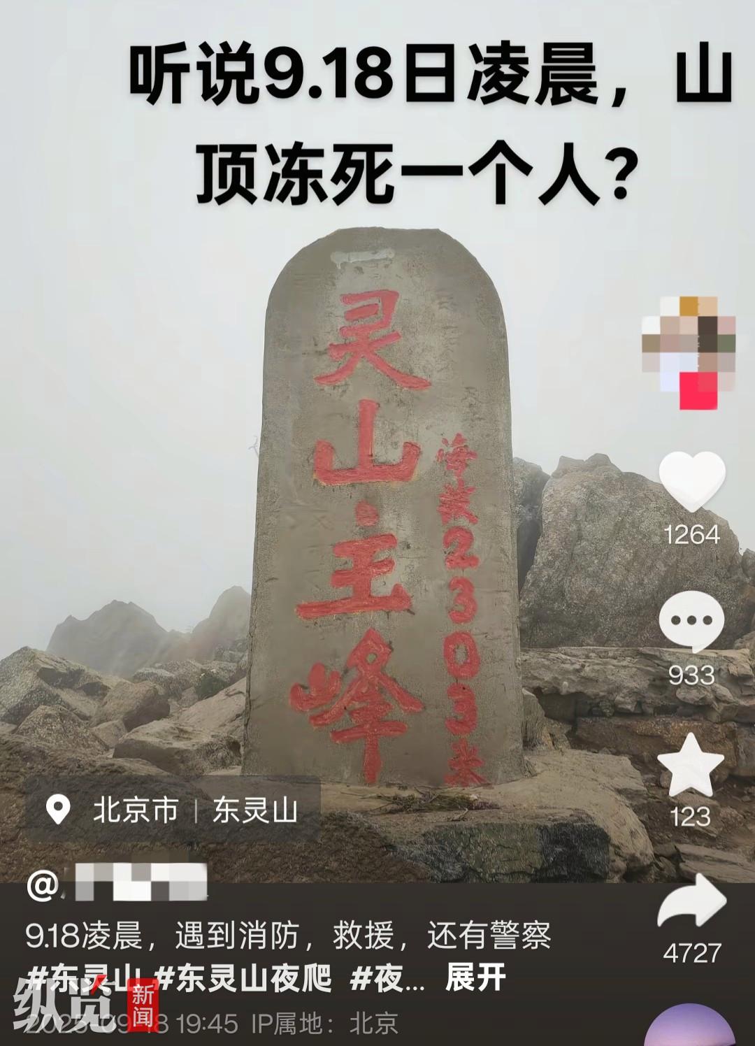9月18日,在社交媒体上,不断有网友称东灵山封山,无法进行夜爬、徒步等活动。对于“封山”的原因,网上有多个视频、网帖称,是因为有人在18日凌晨夜爬被冻死导致封山,还有的称是有人在山上遭到了蛇咬。