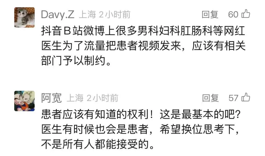 社交平台上,为数不少的网友留言反映相同遭遇,作为公开发布视频里的主要人物,患者知情同意权没有被充分尊重: