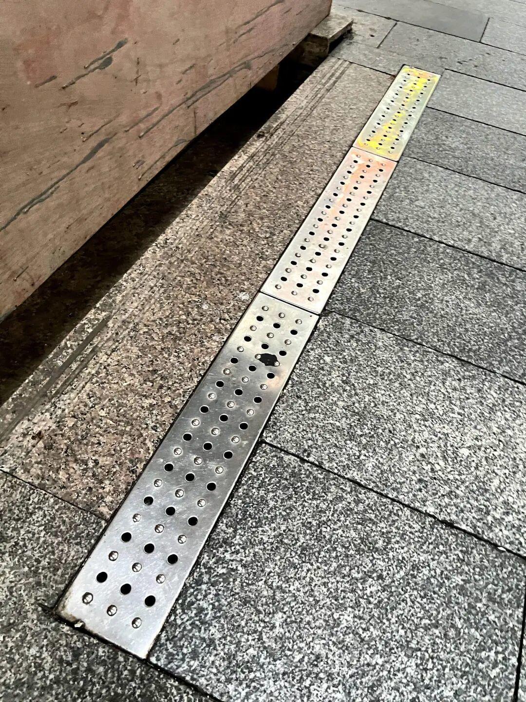 在实际走访中,“记者帮”发现不锈钢盲道在雨天的防滑性能确实饱受诟病。广州天河区体育路、天河路多处的不锈钢盲道,每逢下雨,表面便如同抹了油,路人行走其上小心翼翼,稍有不慎就会滑倒。视障人士依靠盲道出行,在这样湿滑的路面上,危险系数加剧,原本的“安全通道”反而成了“危险地带”。不仅如此,部分不锈钢盲道还存在施工质量问题,螺丝松动、边角翘起,不仅可能对视障人士的盲杖行进造成阻碍,还容易绊倒行人,甚至可能割伤脚跟。