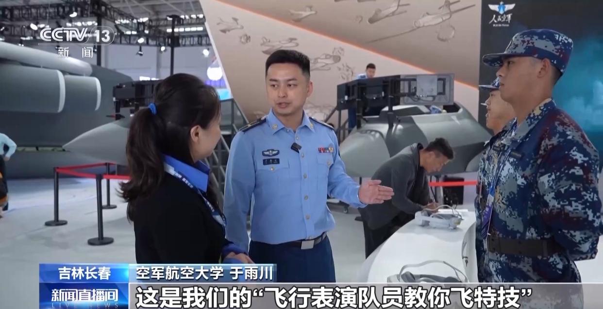 在“飞行表演队员教你飞特技”的一个活动项目中,可以通过VR眼镜看到,左右两个飞机如何在空中密集的编制下完成精密动作,和场外的红鹰表演队、天之翼表演队进行场内联动的呼应。