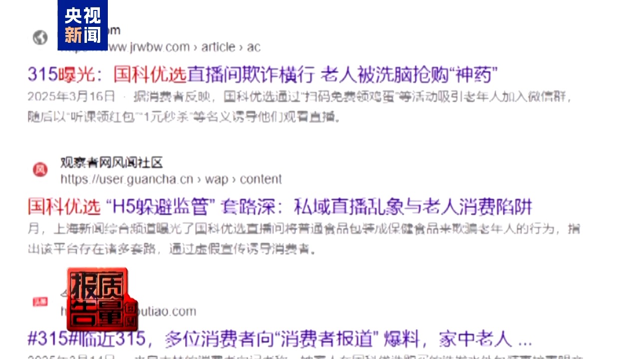 上海王女士所观看的私域直播间名为“国科优选”。记者调查发现,国科优选在其官网上宣称,已在全国600多个市级行政区域开展业务,且有超过5000个经销商。