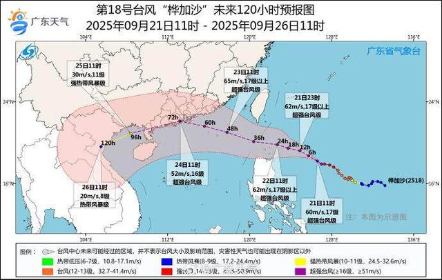 广东省气象台9月21日11时对台风“桦加沙”的路径和强度预报