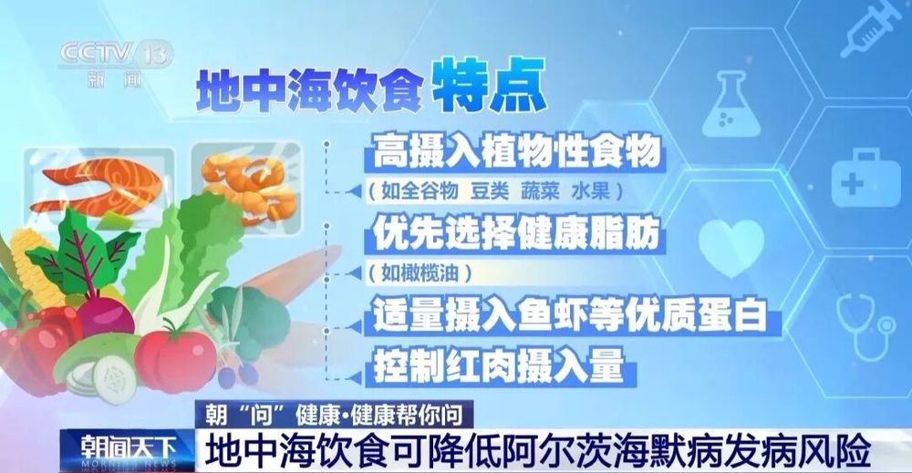 最新研究显示,地中海饮食有助于降低阿尔茨海默病的发病风险,尤其是遗传风险较高的人群。