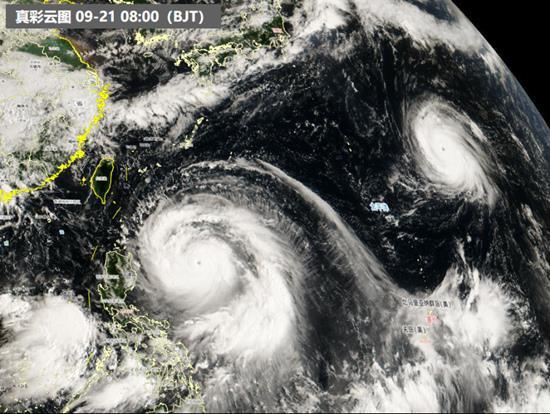 海上“双台共舞”的局面常见,但两个超强台风同现却不多见,上次两个超强台风共存是在2015年8月19日至20日——“天鹅”和“艾莎尼”。