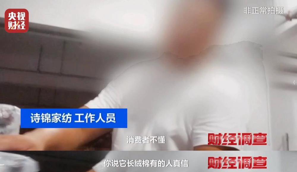 在豫鑫家纺店,一款批发价仅95元、年销20多万件的四件套被宣称为“全棉磨毛”,但实际含35%化纤,以此降低成本,再贴“全棉”包装宣传。即便单价低,商家也能凭网络销量赚取可观利润。