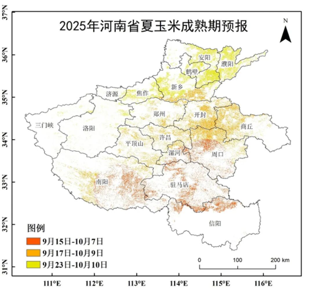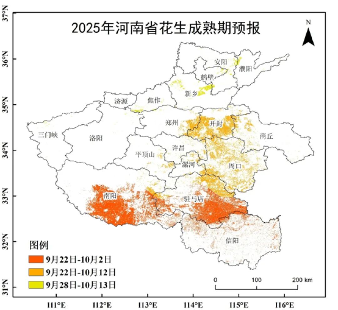 天气直接影响着农作物的成熟节奏。河南省气象科学研究所所长成林结合当前作物发育进程和未来天气预测,对主要秋作物成熟期和冬小麦播种期给出了预报。预计全省夏玉米成熟期接近常年,集中在9月15日至10月10日。花生的适宜收获期则较常年略偏晚,大体在9月22日至10月13日之间。