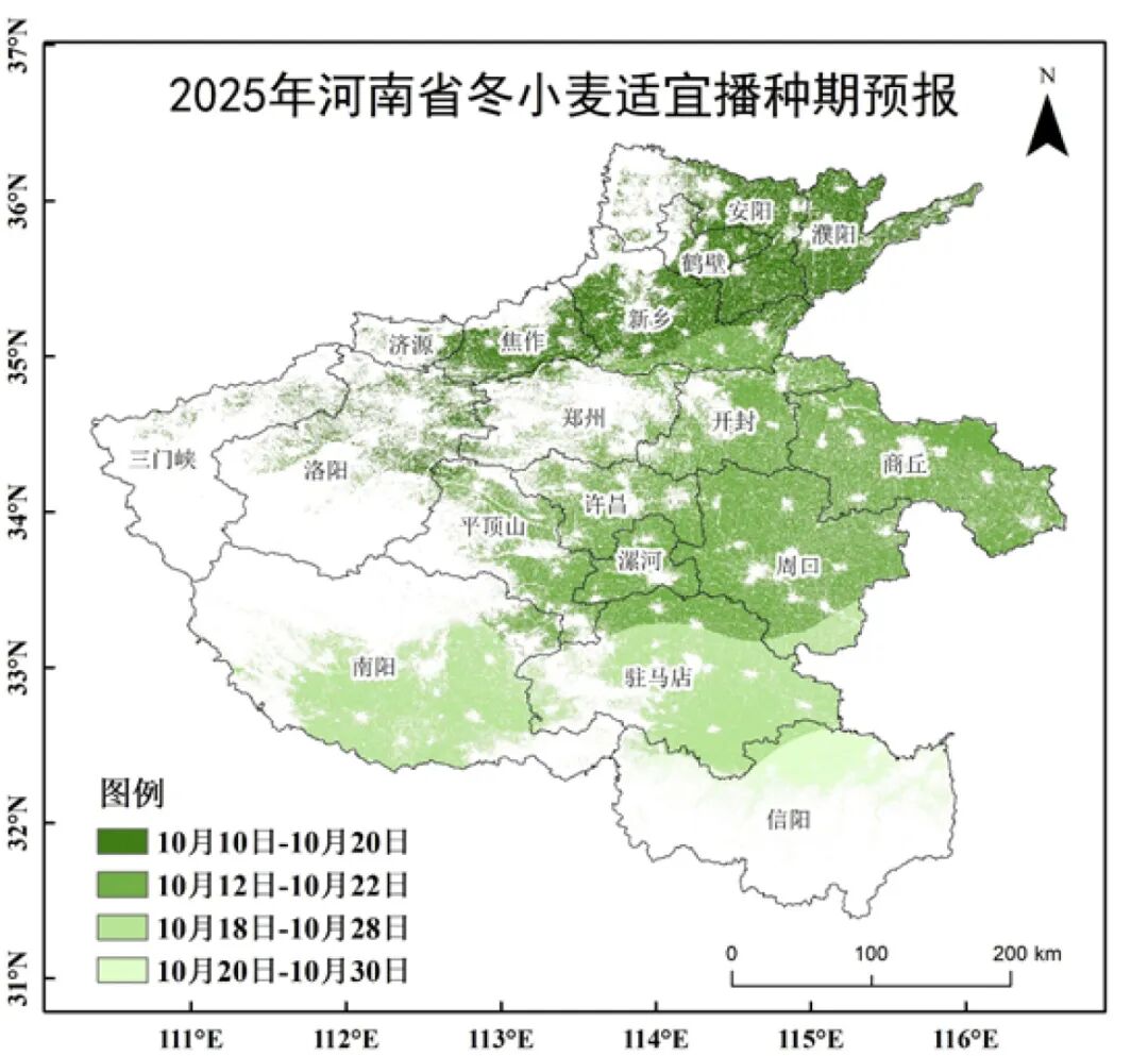 对于即将开始的麦播工作,今年的冬小麦适宜播种期也因秋作物收获推迟而整体略有偏晚。豫北、豫西大部适宜播种期为10月10日至20日;豫中、豫东大部为10月12日至22日;南阳、驻马店地区为10月18日至28日;信阳稻茬麦区则要到10月20日至30日。
