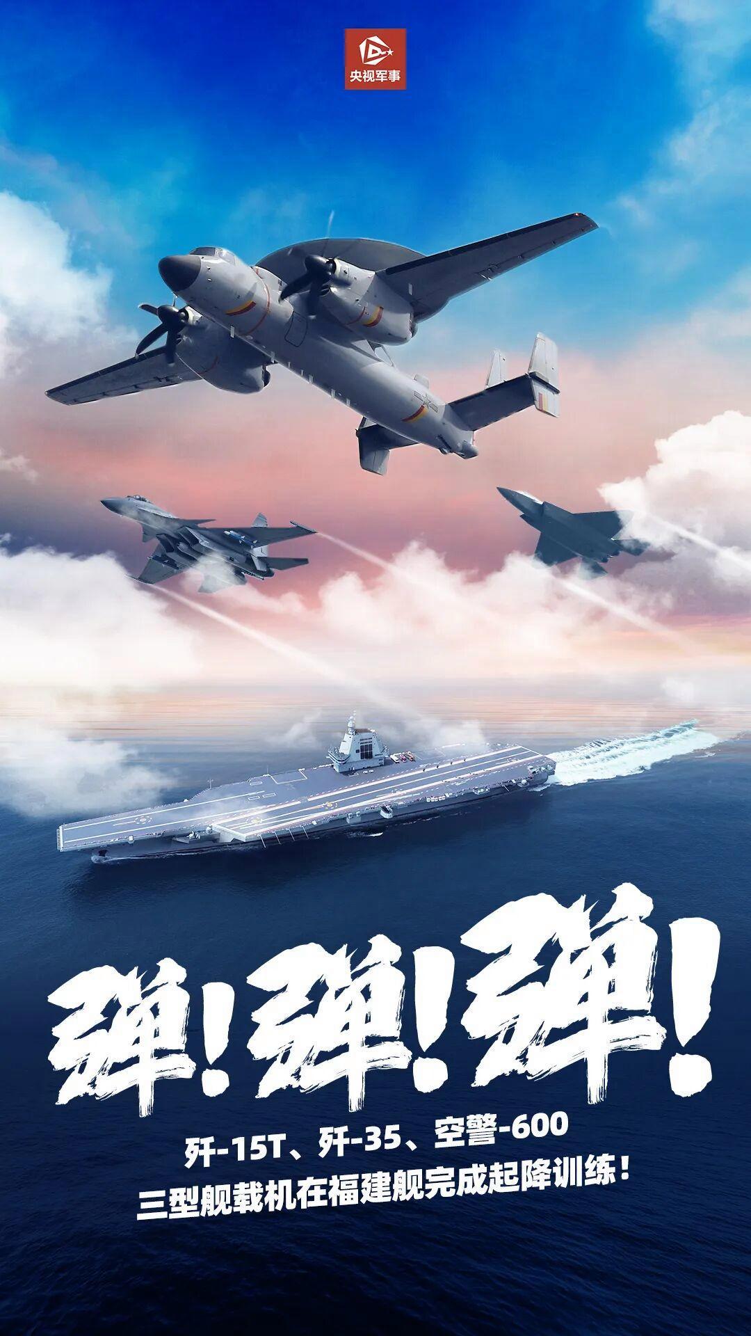 歼-15T、歼-35和空警-600三型舰载机的成功弹射起飞和阻拦着舰,是我国航母发展历程中取得的又一次突破,对推进海军转型建设具有里程碑意义。