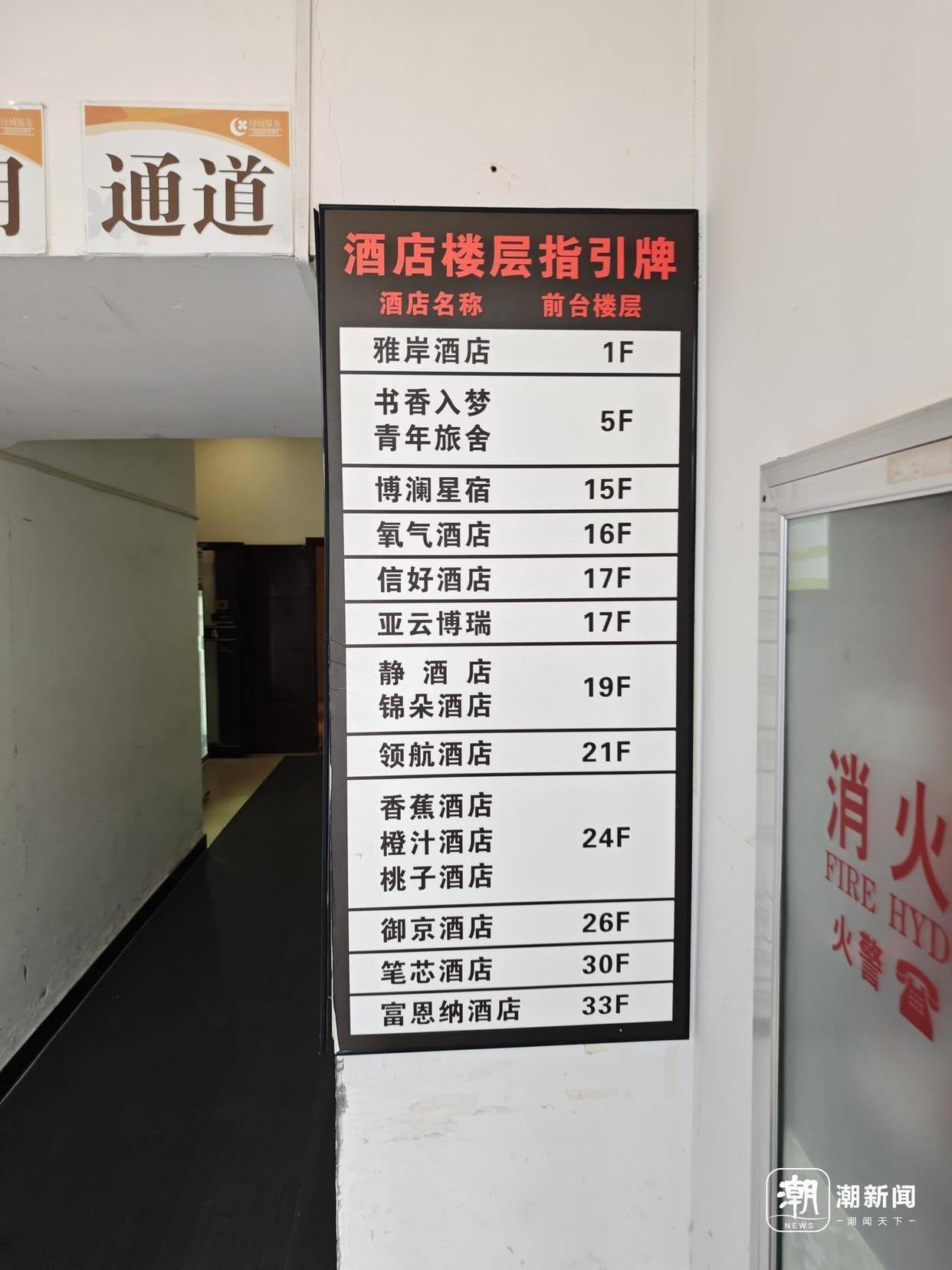 24层则标注了3家酒店,名字都由水果命名——“香蕉”、“橙汁”和“桃子”。