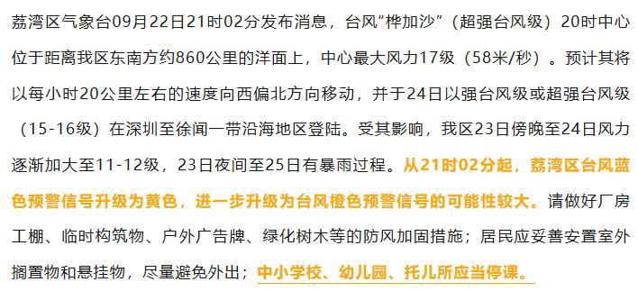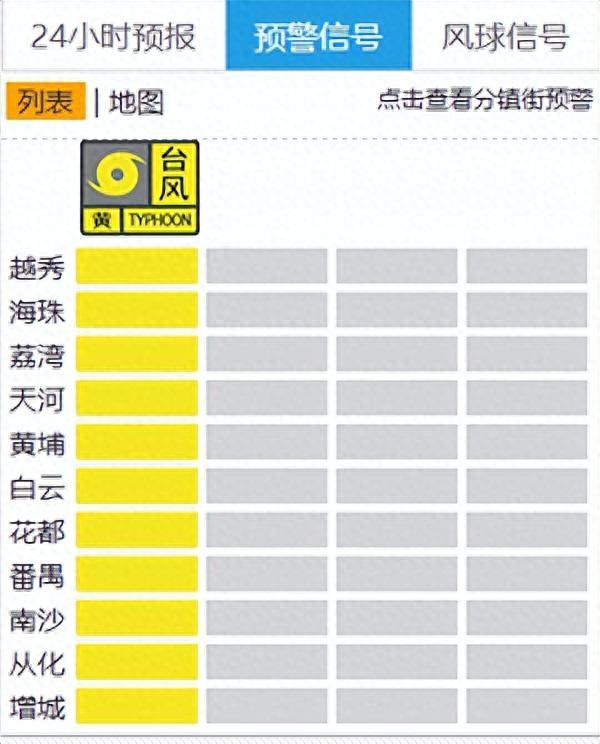 据@广州天气 最新消息,截至9月22日21时30分,广州11区台风黄色预警生效。