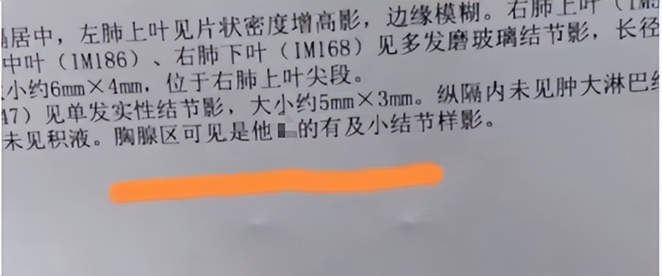 这份检查时间为9月21日的《影像科报告单》“检查所见”一栏,最后有“胸腺区可见是他×的有及小结节样影”表述,该网友疑惑:“不知道是录入错误,还是有意的发泄?”