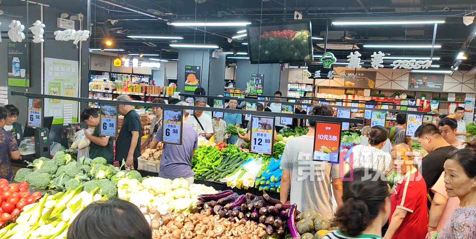 超市负责人表示,今天的备货量是往常的3-5倍。同时,线上平台在今天早上已接到超1000单订单,增长了2-3倍,工作人员正快速打包。