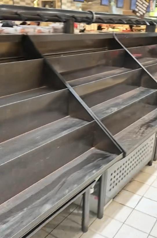 吴女士拍摄的视频显示,超市的蔬菜区,大多物品都已被抢购完,但辣椒还剩余不少,“我当时还没去泡面区,后来我看到有网友拍视频,方便面的话也是只剩下那些辣味的没有卖完。”