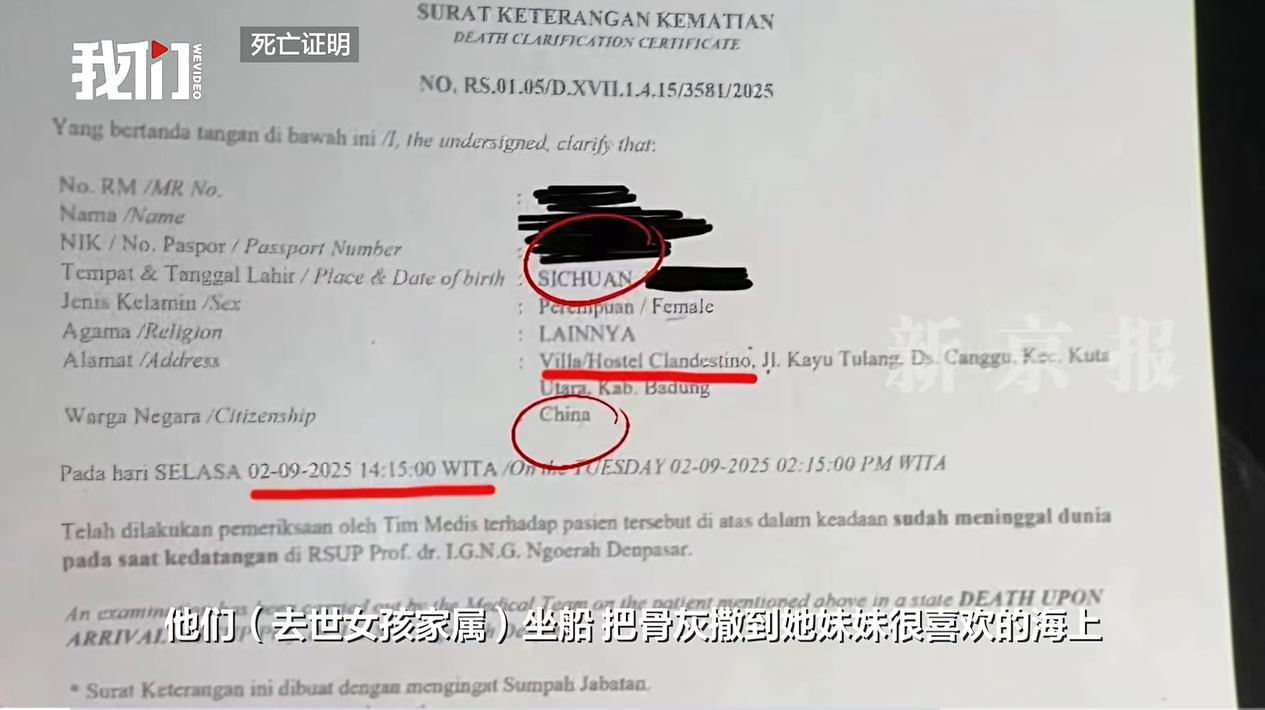 李女士表示,2日她离开时,房间内仅剩女孩一人,此前女孩曾向她询问是否有药品。“2日中午去世的,8号旅馆才通知家属。她姐姐给我发视频,家属坐船把部分骨灰撒在妹妹喜欢的海上,另一部分带回国。”