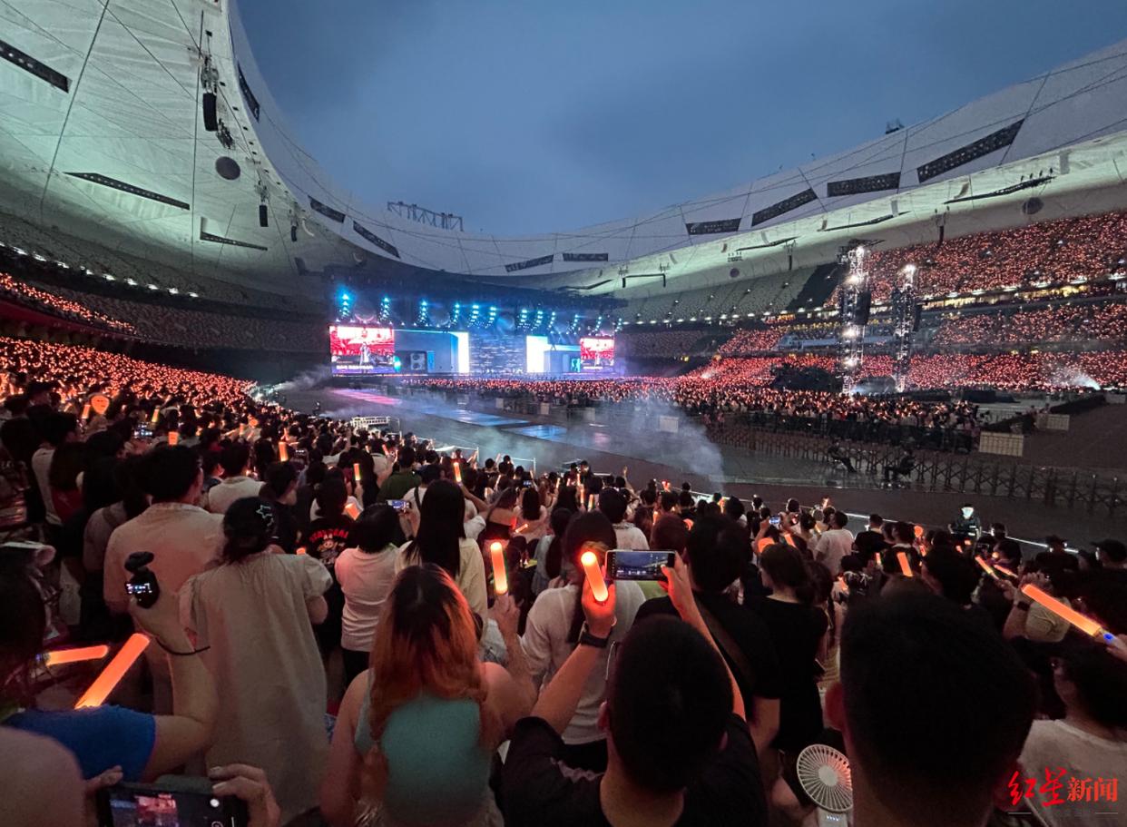 北京的肖女士喜欢五月天已经有近20年的时间了,今年五月天已在北京开了13场演唱会,肖女士做到了“全勤”。她告诉红星新闻记者,五月天演唱会的时候歌迷站着看,是资深歌迷多年前已“约定俗成”的习惯。