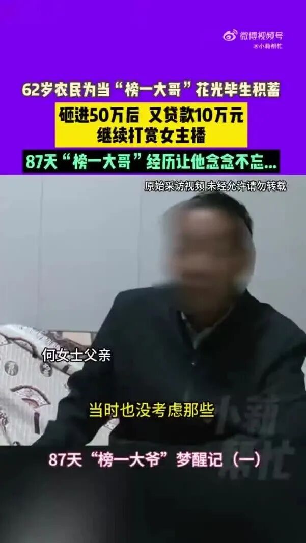 一个电话,家人意外发现父亲3个月竟然将种地积蓄50多万全部打赏。