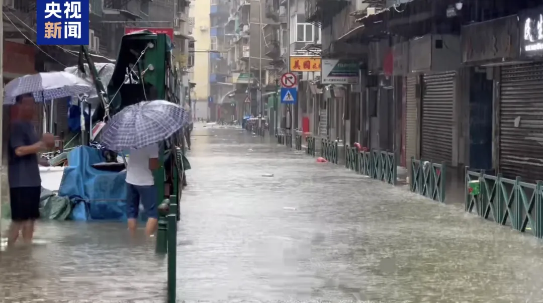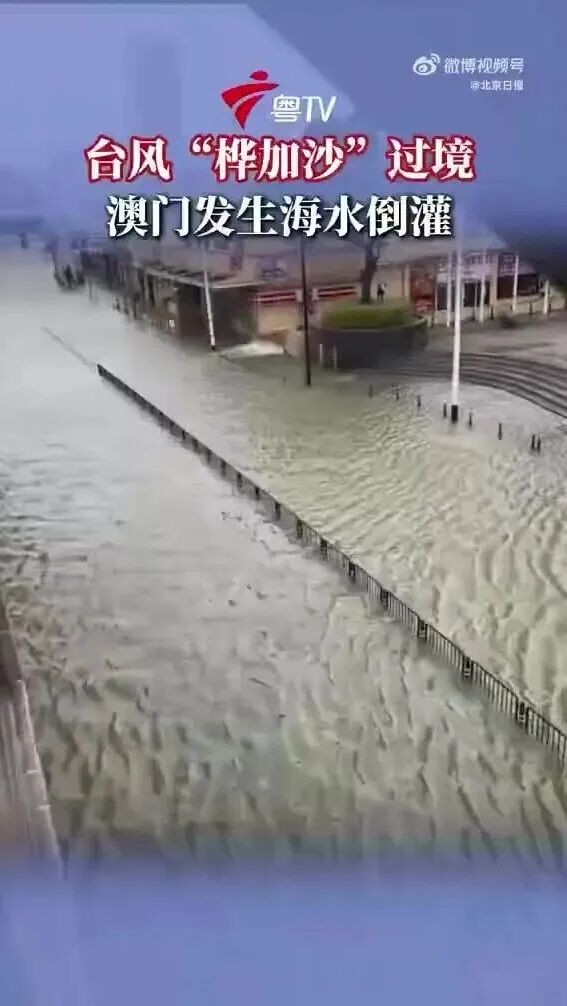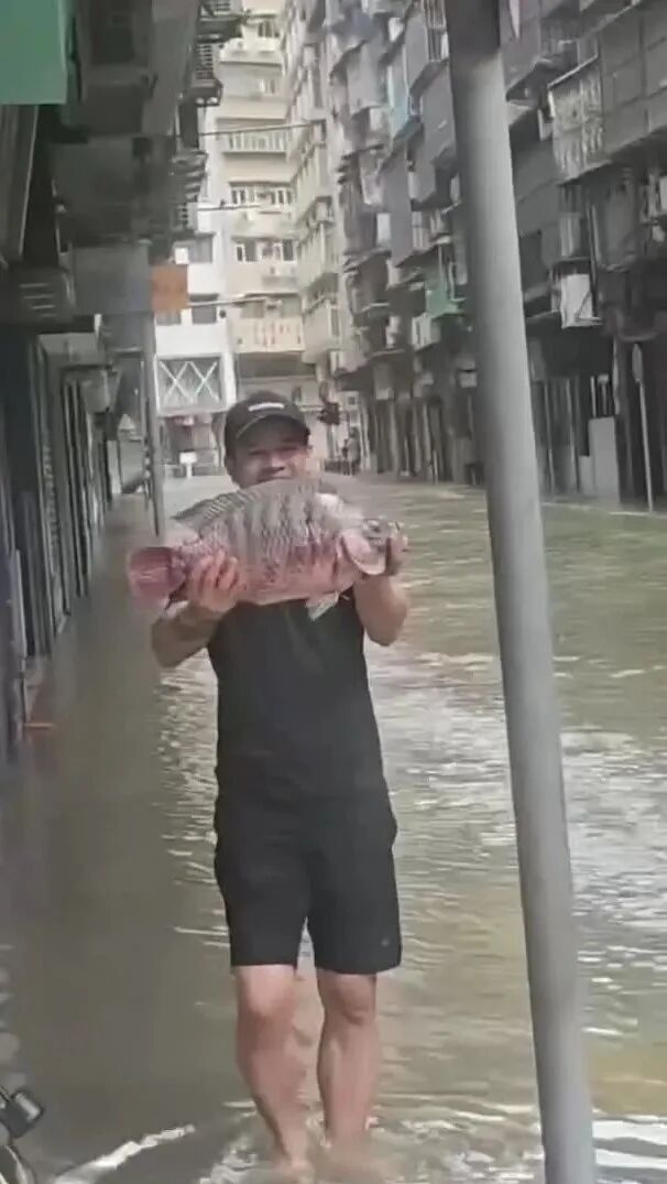 受风暴增水影响,澳门低洼地区水位急速上升,海水已涌入内陆,澳门已出现大范围严重水浸。内港一带水浸高度已超过1.5米,路环圣方济各堂站录得约1米水浸,内港码头、河边新街、沙梨头街市等地均已出现水浸,部分街道水深及膝。据悉,海水倒灌使部分鱼群被冲上马路,有澳门市民上街捉鱼。