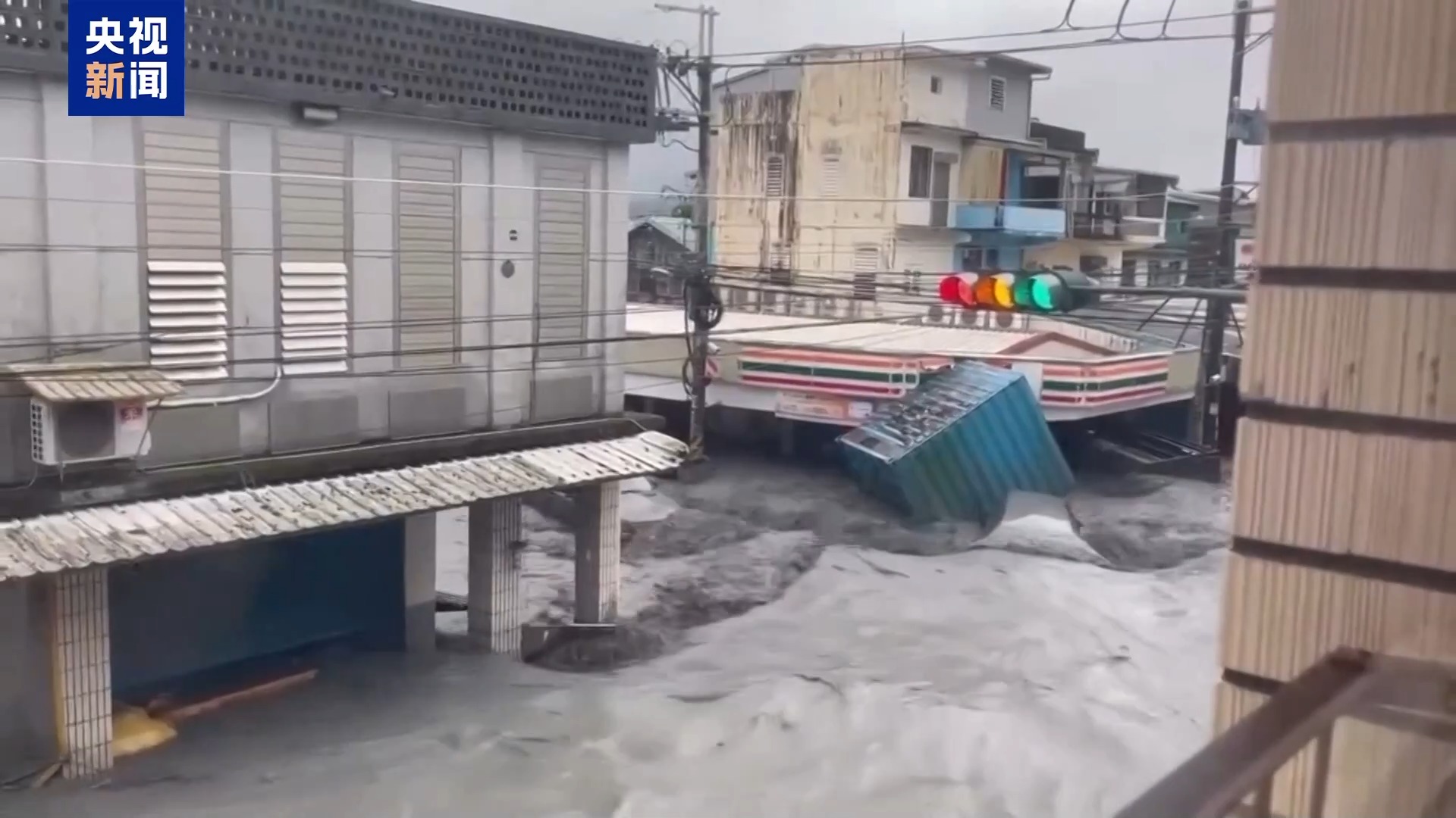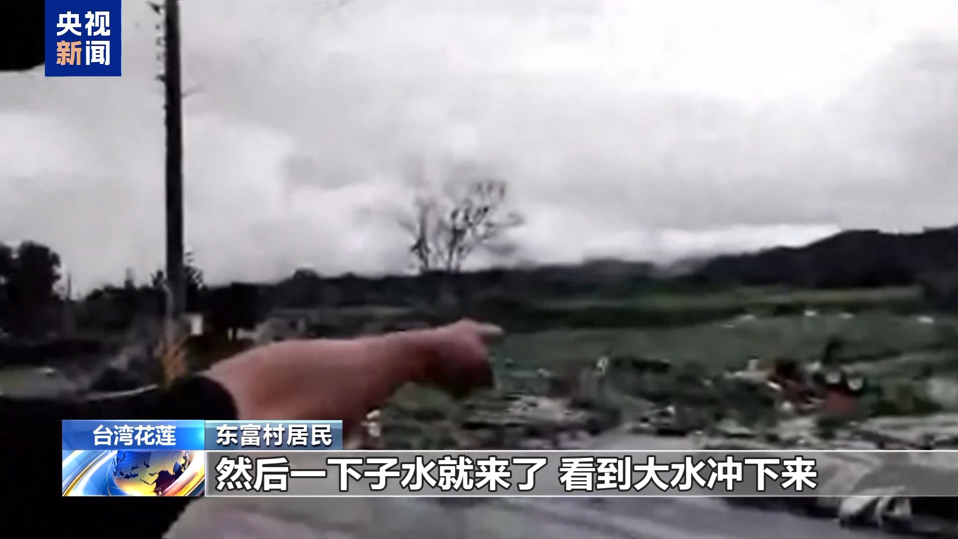 “桦加沙”台风带来强降雨,马太鞍溪堰塞湖溢流溃堤,洪水夹带土石摧毁市区。水淹速度快,居民措手不及。视频画面显示,大水突然涌入,一名居民站不稳跌进水中,几秒后,强劲的水势夹杂着家具和木材淹进街道,好在最后该居民平安脱困。
