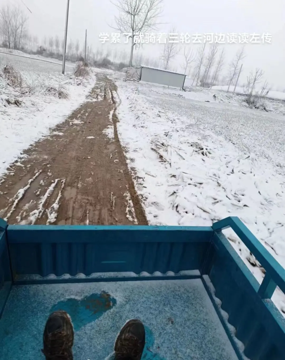 备考的日子浓缩成了社交媒体上的几张照片。在地面没有硬化的房屋中,张舜禹穿着厚厚的棉衣坐在凳子上看书,“攒到钱回到皖北老家复习,冬天家里手脚都伸不开,但我觉得那是我经历过最短暂的一个冬天。”他写道。