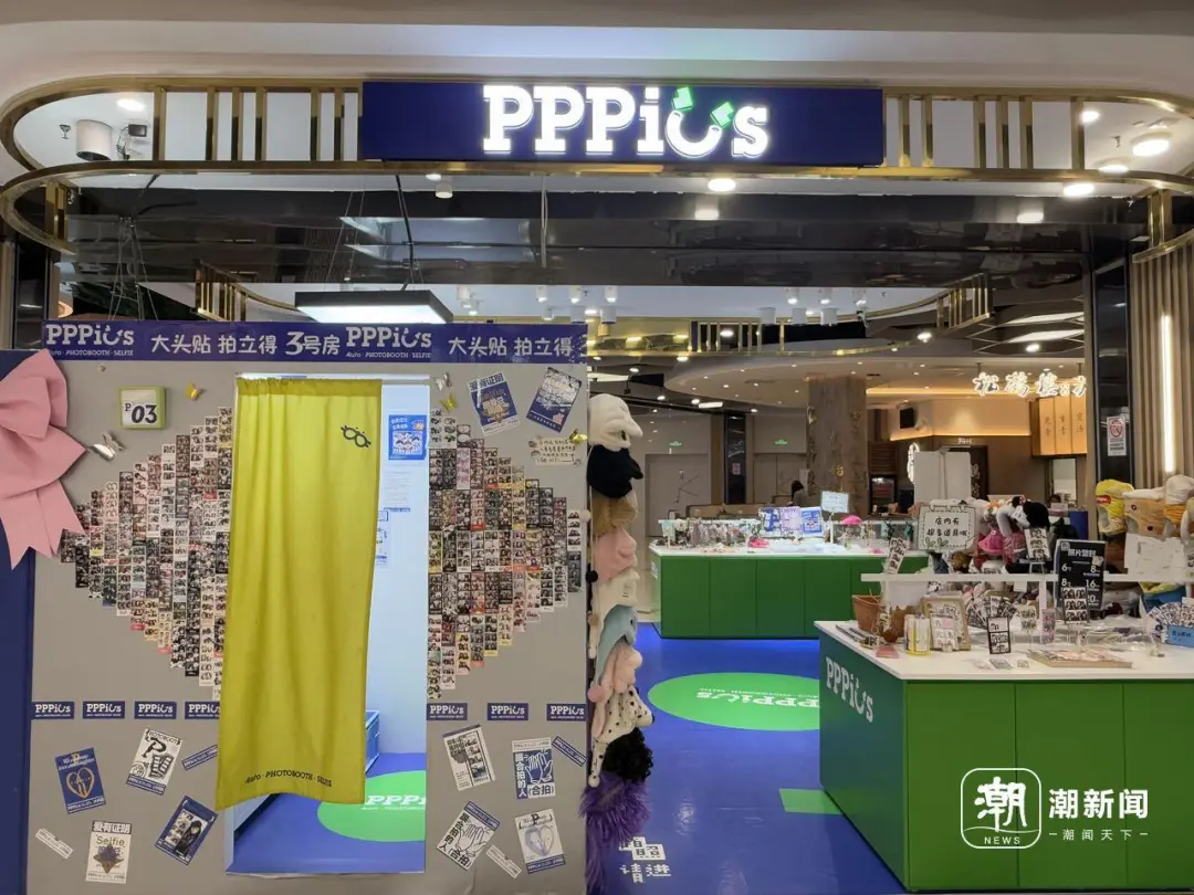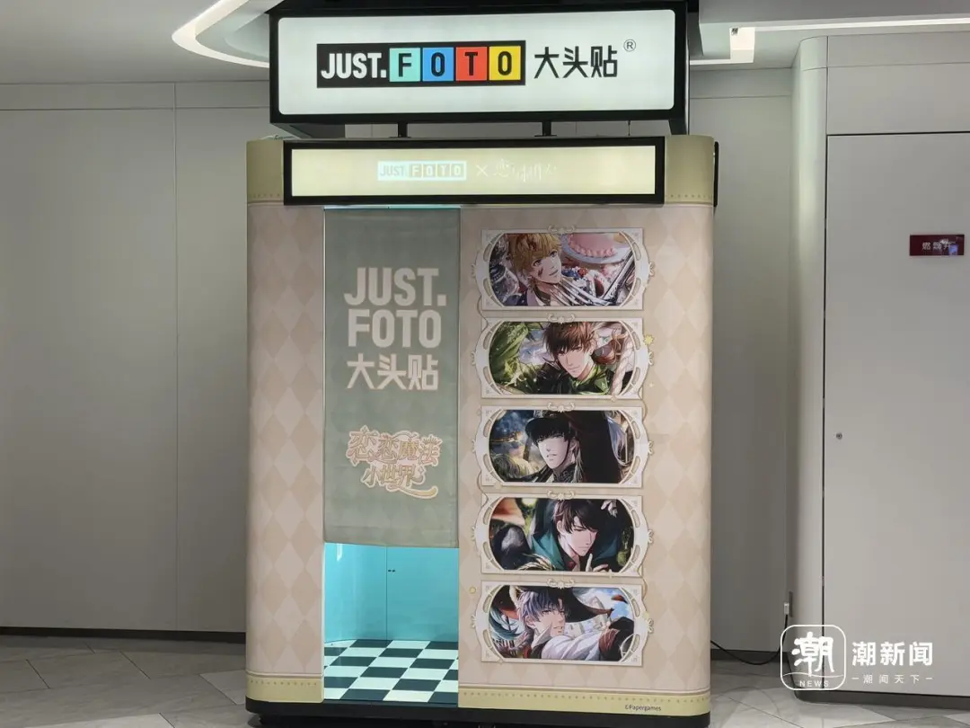 位于湖滨银泰的这家大头贴店,店内不仅有三台大头贴机器提供拍摄服务,还同步销售相关周边产品。