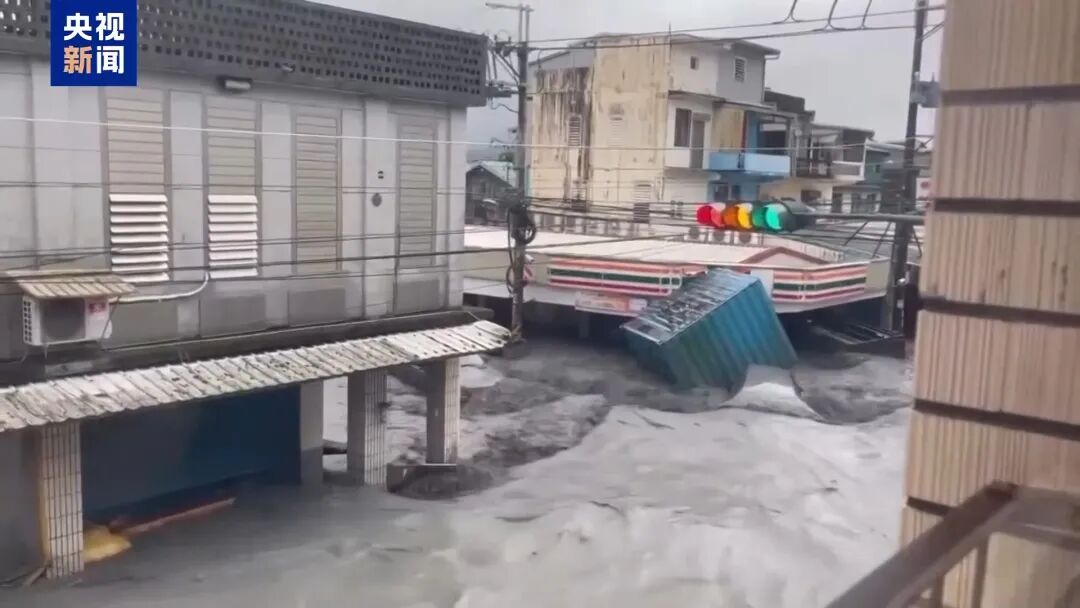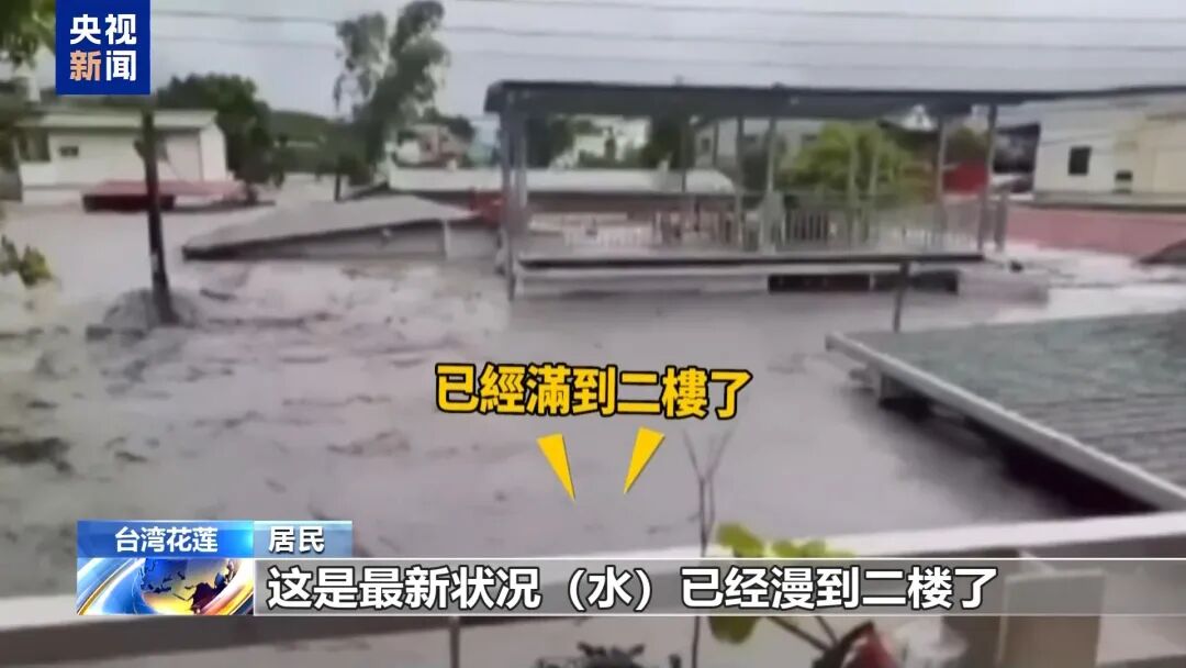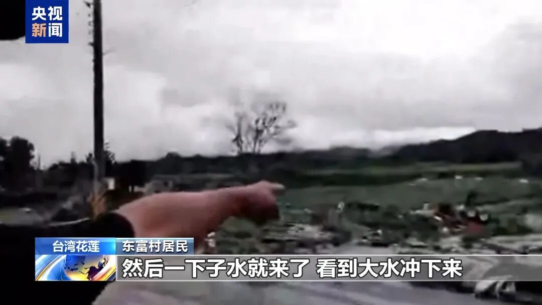 “桦加沙”台风带来强降雨,马太鞍溪堰塞湖溢流溃堤,洪水夹带土石摧毁市区。水淹速度快,居民措手不及。画面显示,大水突然涌入,一名居民站不稳跌进水中,几秒后,强劲的水势夹杂着家具和木材淹进街道,好在最后该居民平安脱困。