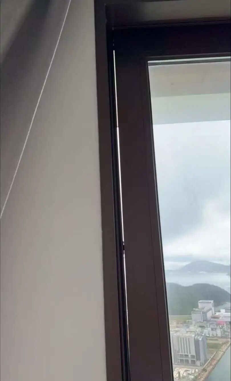 她表示,自己居住的楼层在60层以上,台风来临前,她卧室到阳台的门框存在缝隙(推拉窗缝隙),加上楼层较高,自己没经历过这么大的台风,一度比较害怕。