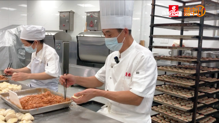师傅们正在制作鲜肉月饼
