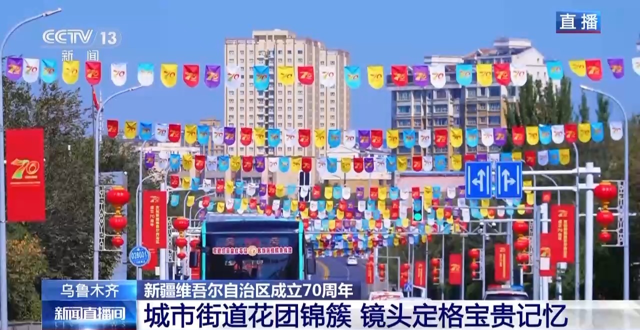 新疆维吾尔自治区成立70周年庆祝大会今天上午在乌鲁木齐市隆重举行。这两天,在新疆乌鲁木齐,喜迎大庆的氛围越来越浓。来感受一下此刻乌鲁木齐的喜庆氛围吧。