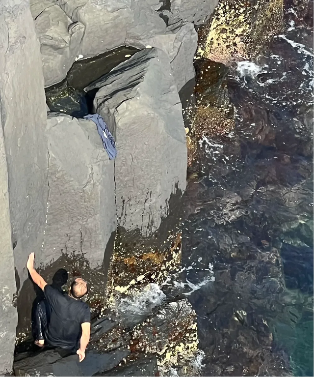 “他从悬崖往下面下的时候,很多人都在喊‘不要下去,太危险了!’但他一心想救人,还是坚持下去了。那里的海岸线是几乎垂直的,下面全是石头,我感觉他随时都可能掉下去,包括海水下面也是有大块礁石,万一掉下去后果不堪设想,我自己当时吓得都哭了。”