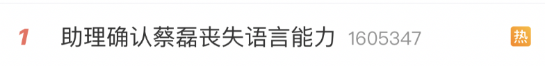 当晚,#助理确认蔡磊丧失语言能力登上微博热搜一,随后深夜,蔡磊转发红星新闻相关报道并发文: