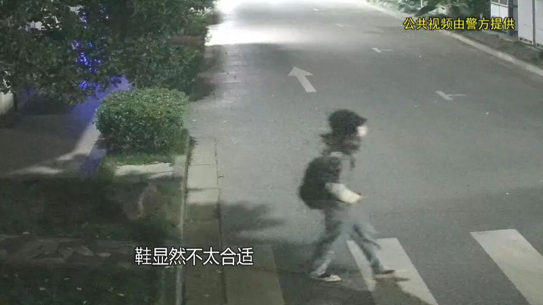警方找到了嫌疑人翻越围墙的出入口,也留意到了刻意穿搭的平底鞋和异于女性的细节特征。长发背影应该是嫌疑人的男扮女装。