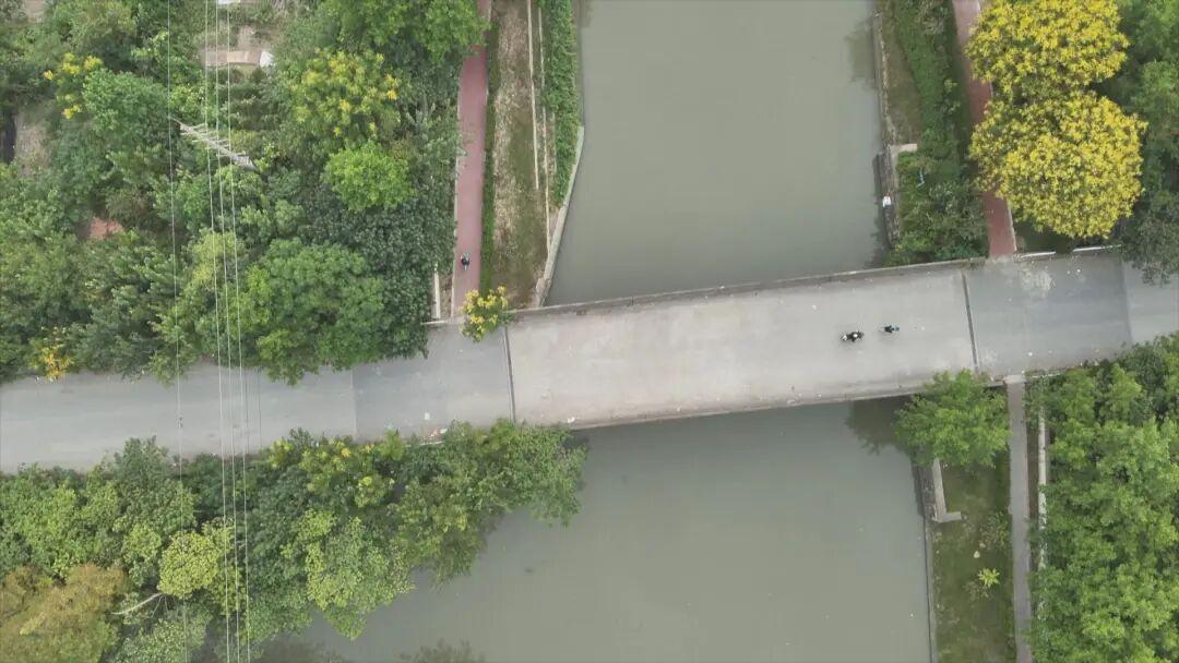 嫌疑人翻越的西南角围墙外,有一条仅供行人和电动自行车行驶的便道,一路连接到北横泾两岸的河滨步道。