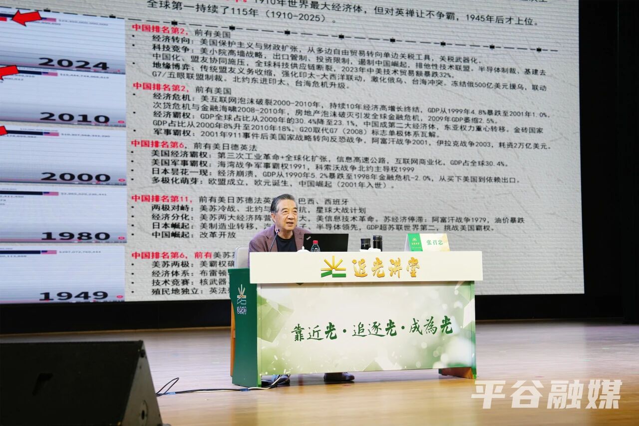在当天的讲座上,张召忠自二战后世界格局重建的历史讲起,以严谨又不失风趣的语言娓娓道来世界发展历程中的关键节点与重要事件。
